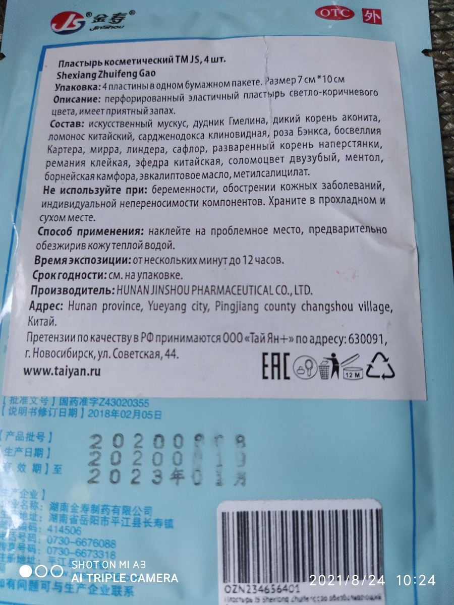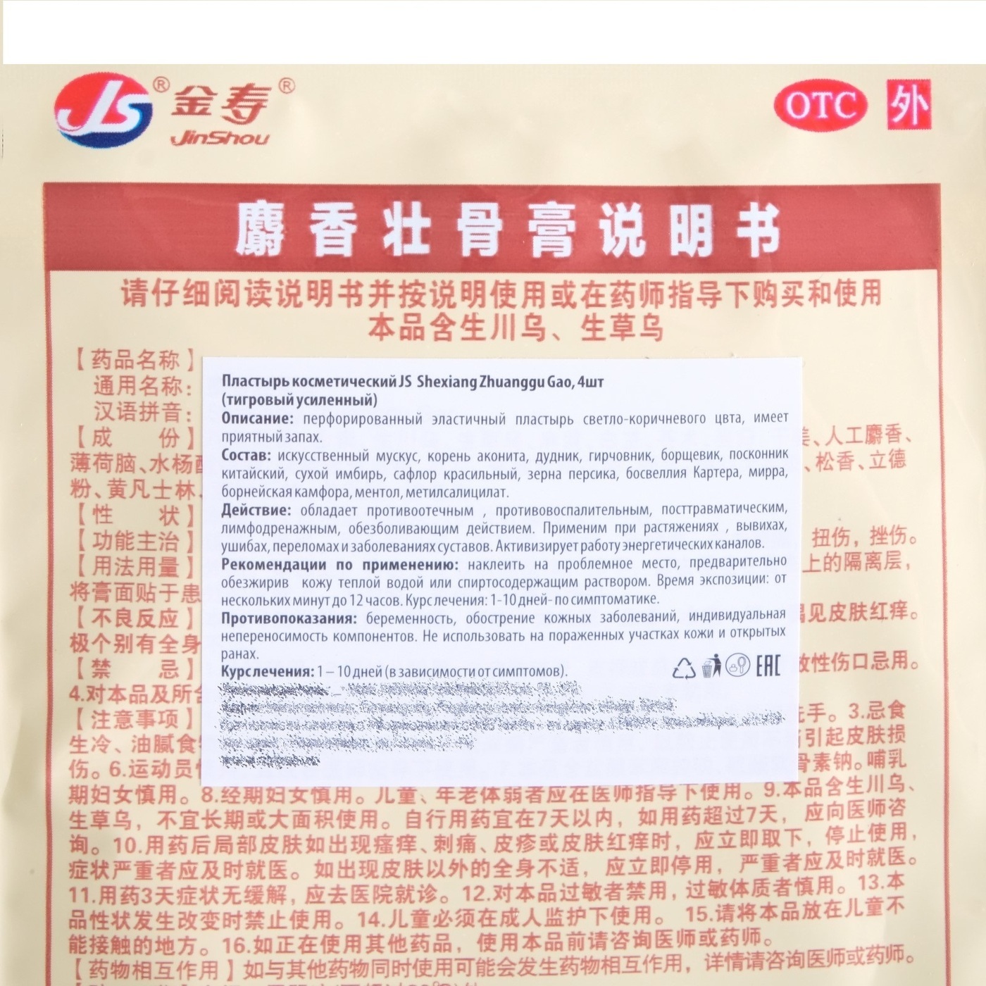 Пластырь JS Shexiang Zhuifenggao обезболивающий, 4 шт.