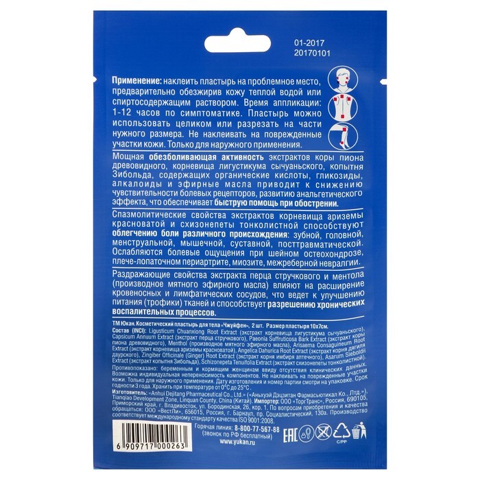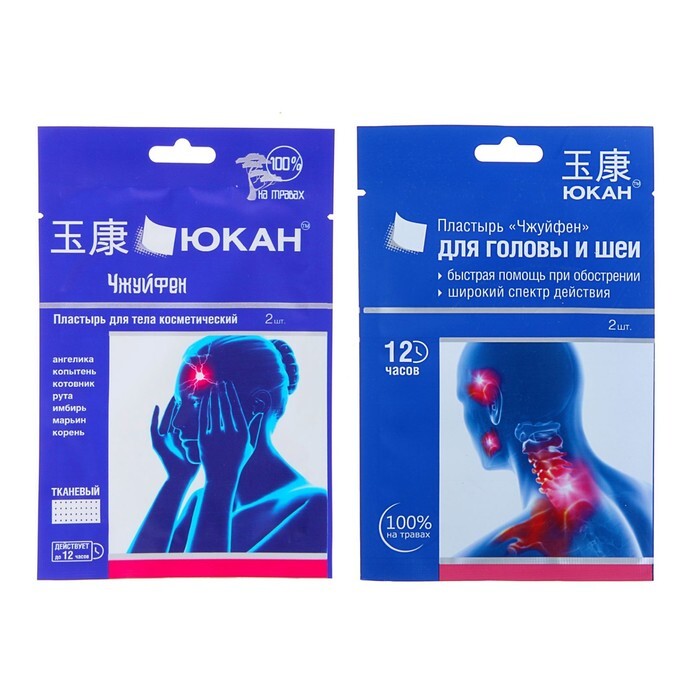 Пластырь "Юкан - Чжуйфен", обезболивающий, тканевый, для головы и шеи, 2 шт