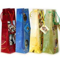 Пакет бумажный для бутылки, декор фольга, 10.2X33X8.9 см, 4 дизайна,10556