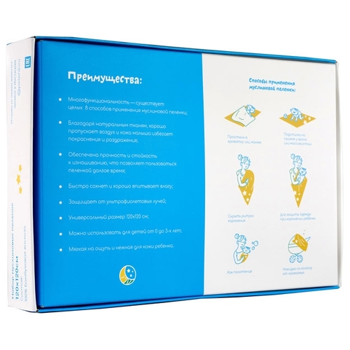 Многоразовые пеленки Пелёнкины муслин 120х120 комплект 4шт