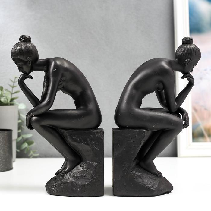 Держатели для книг "Девушка на камне" набор 2 шт чёрный 23,5х10х8,8 см