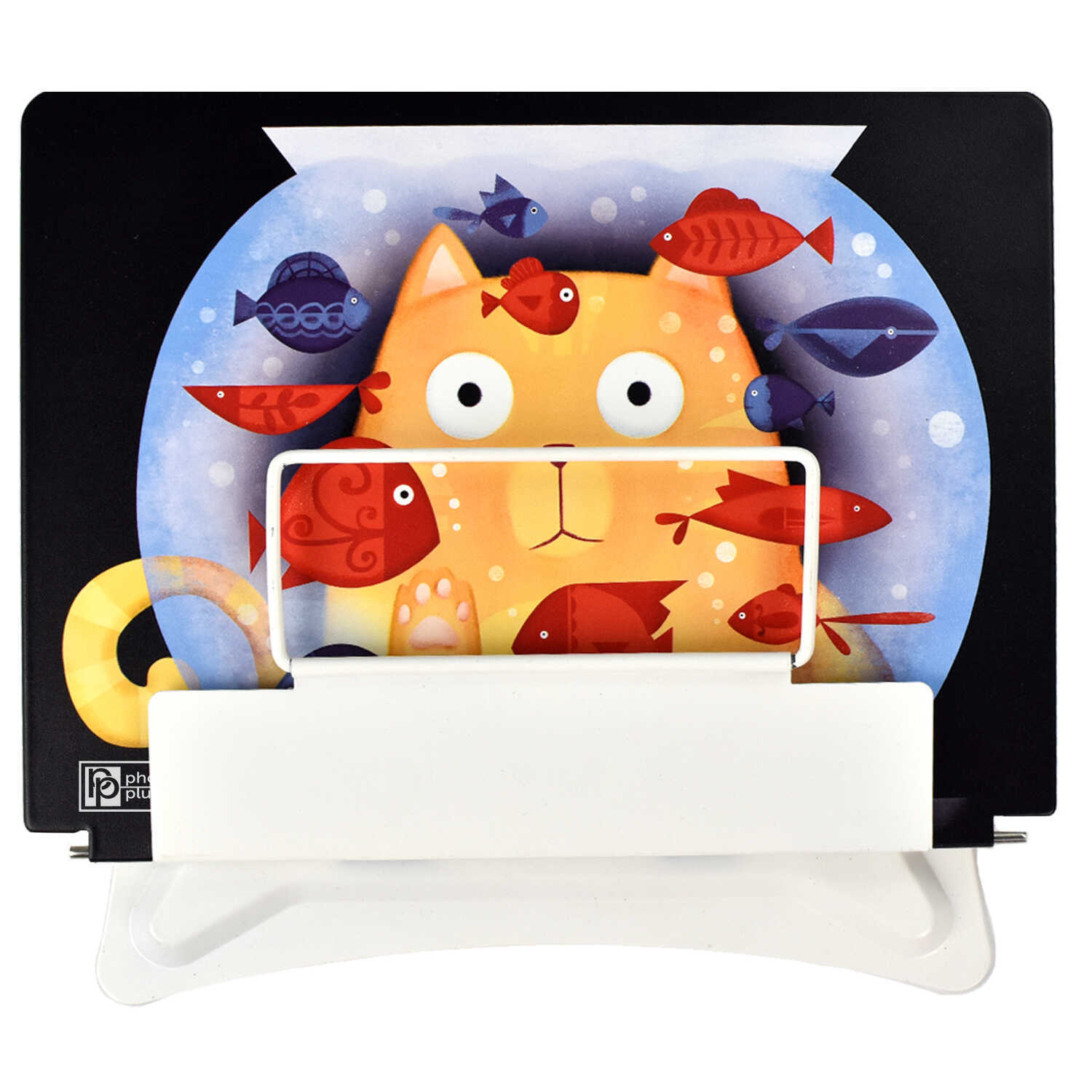 Подставка для книг и учебников "КОТ С АКВАРИУМОМ", 27.5х20х19 см, металл.