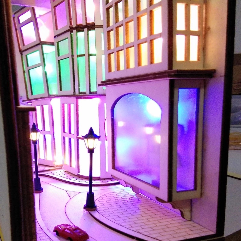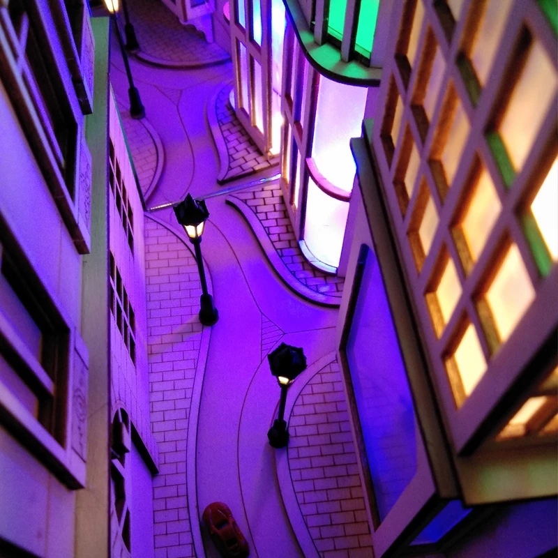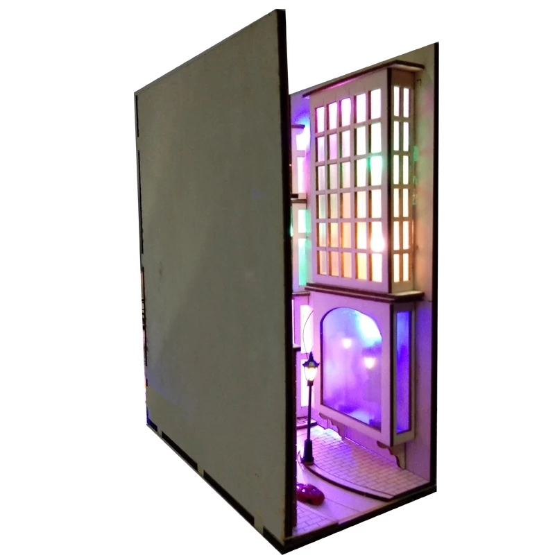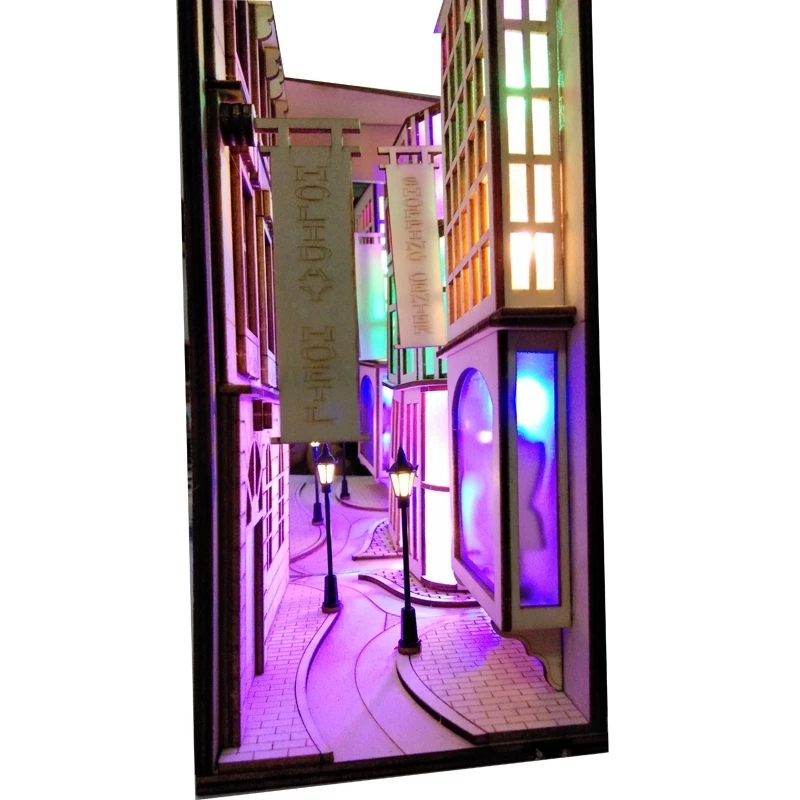 DIY Diagon Street Bookends аллея деревянный книжный уголок Art шумный город Bookends Съемная светодиодная книжная полка подарок