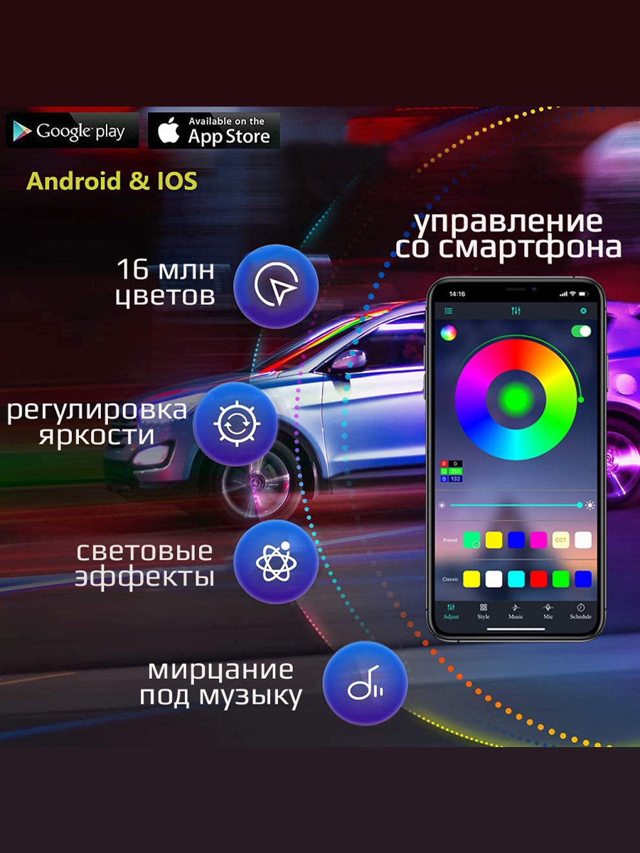 Светодиодная лента для авто с управлением от смартфона, 12В. Уцененный товар