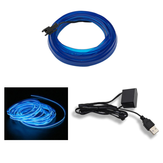 Светодиодная неоновая лента для авто, в USB 5 Вольт, 5 метров, синий