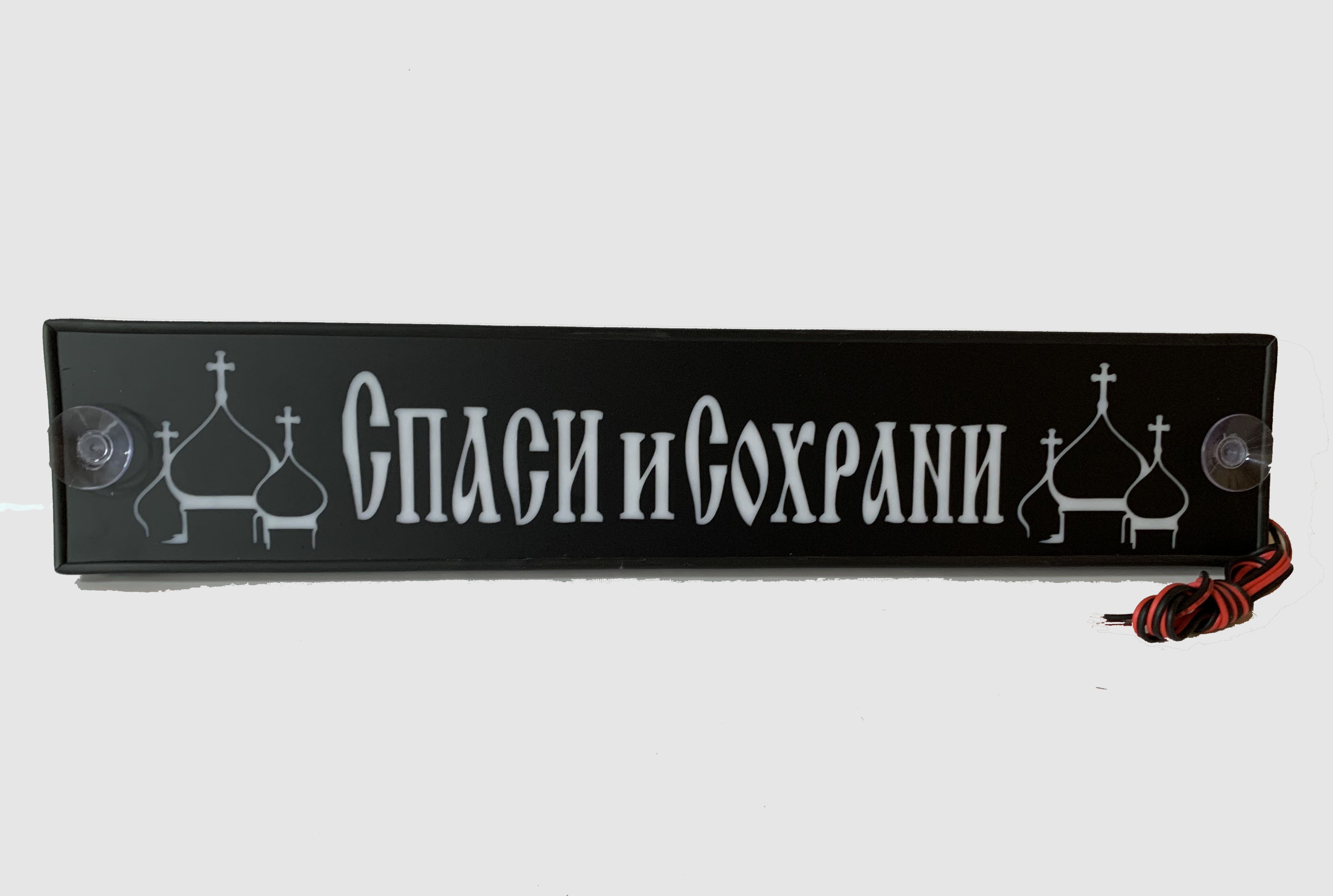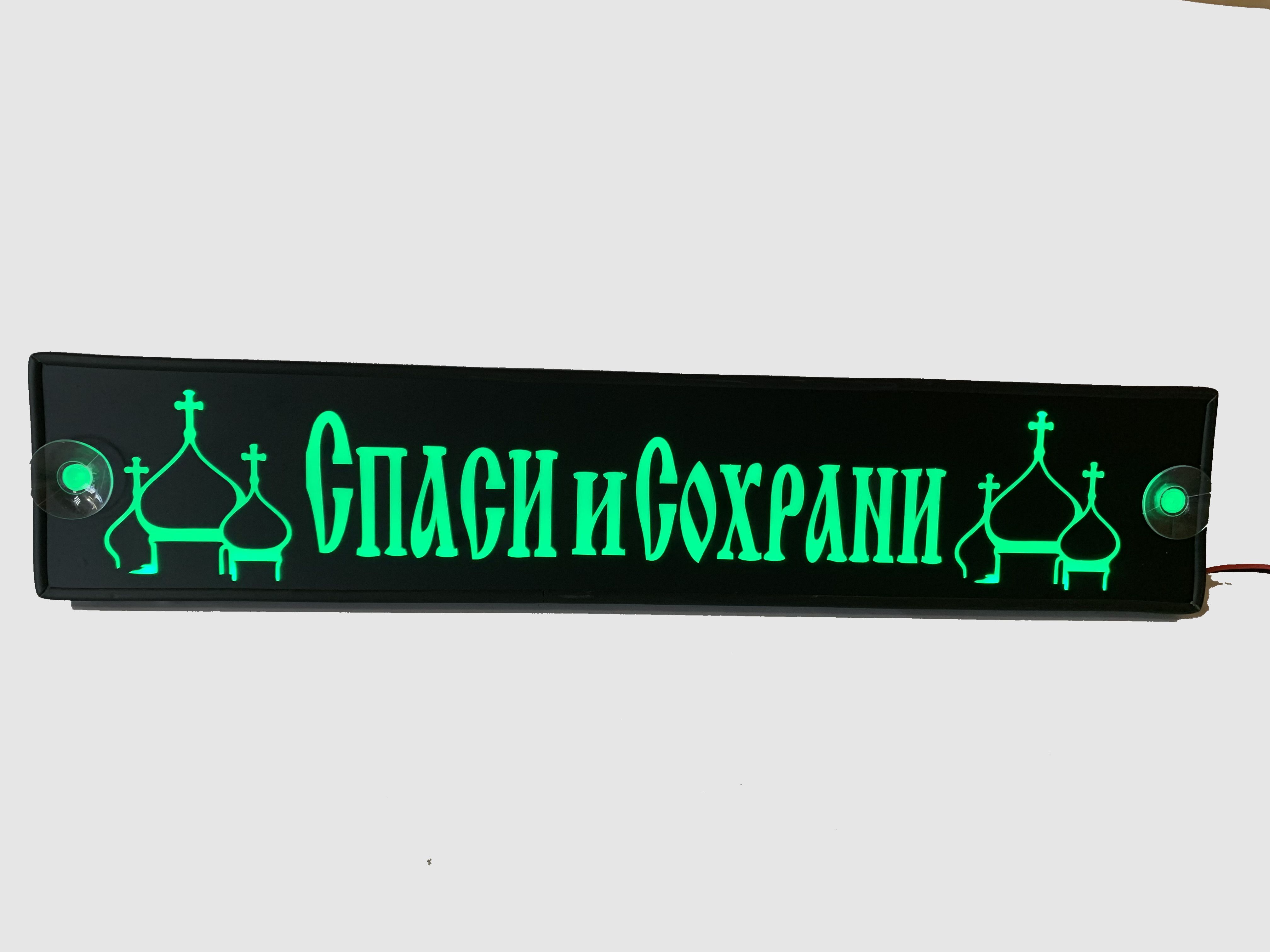 Таблица СПАСИ И СОХРАНИ с куполами 24в белая/черная подсветка зеленая