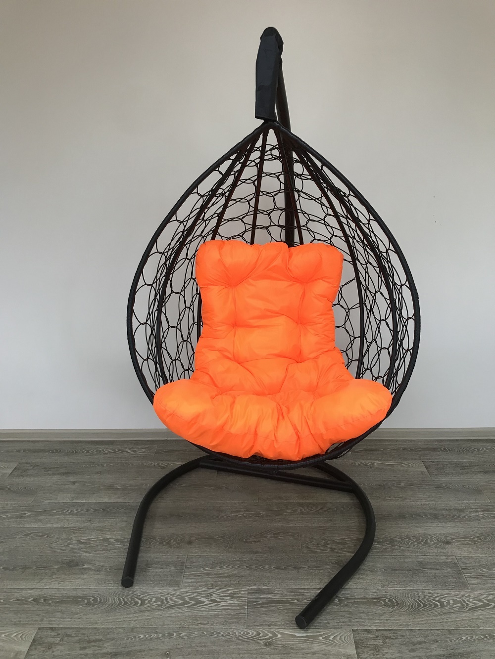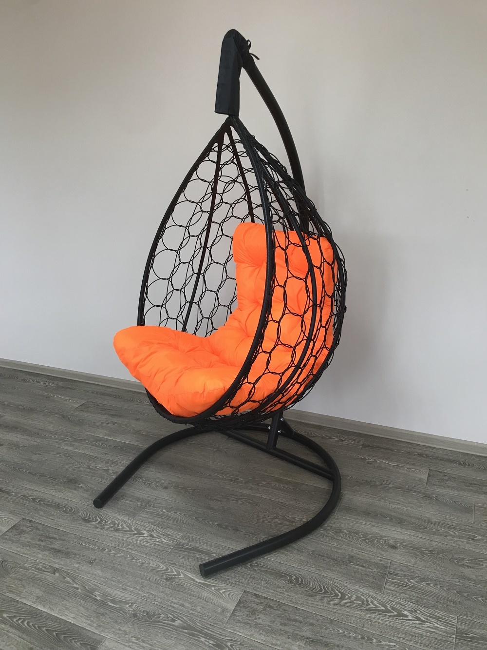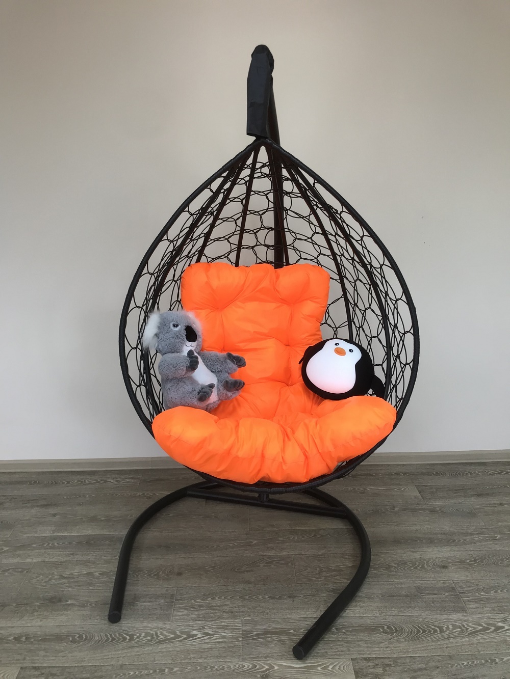 Кресло подвесное из искусственного ротанга черного цвета (подушка оранжевая №10)