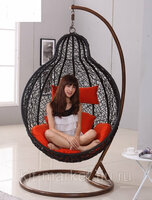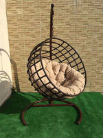 Кресло подвесное одноместное AFM-300B бежевого цвета из плетеного искусственного ротанга