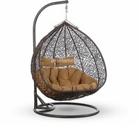 Кресло подвесное двухместное AFM-109A коричневого цвета из плетеного искусственного ротанга