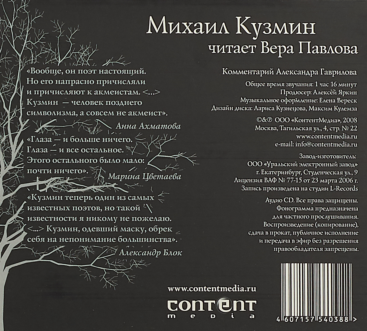 Михаил Кузмин. Читает Вера Павлова (аудиокнига на 1 audio-CD) | Кузмин Михаил Алексеевич