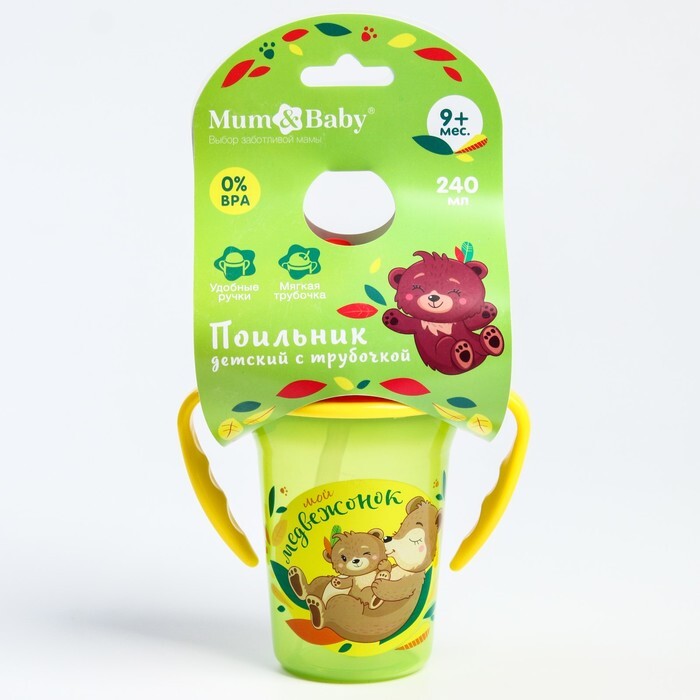 Поильник с трубочкой "Мой медвежонок", с ручками, 240 мл.