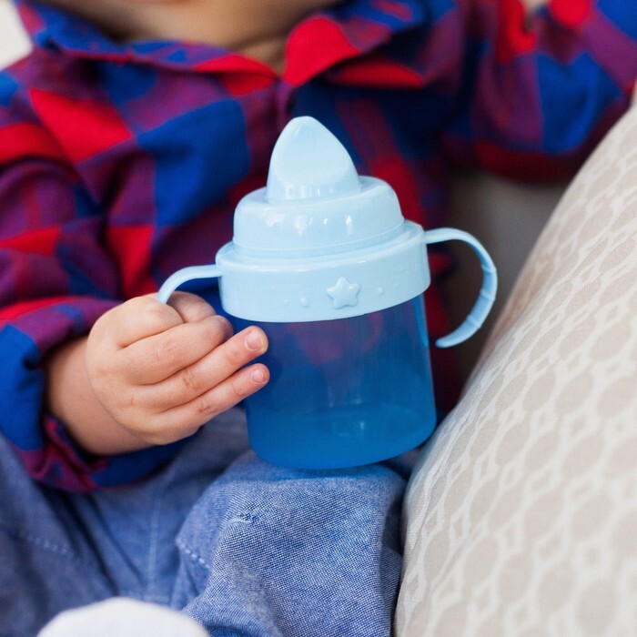 Поильник детский с твёрдым носиком, с ручками, 150 мл, цвет голубой/синий