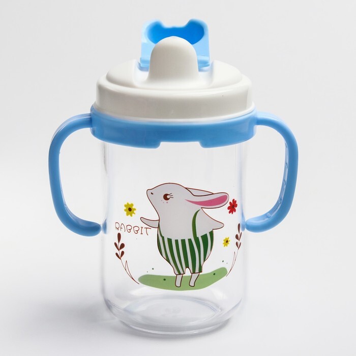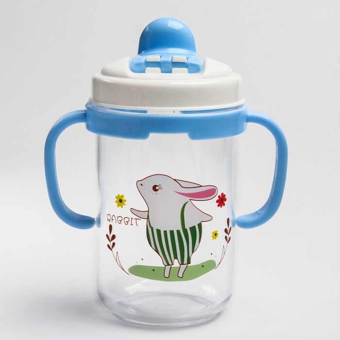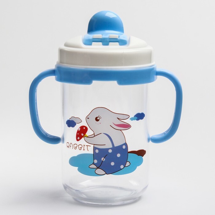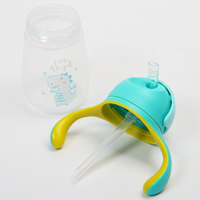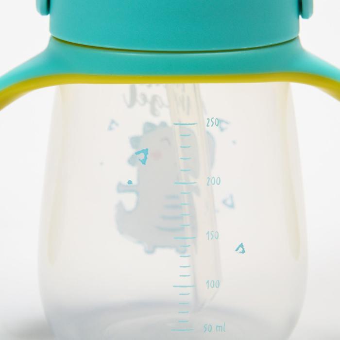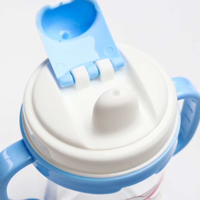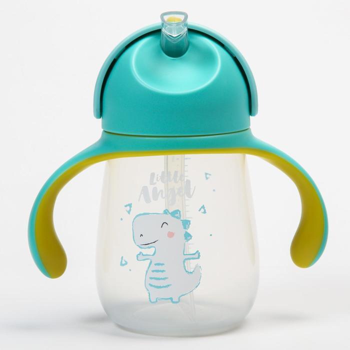 Поильник с трубочкой, 280 мл, с ручками, цвет голубой