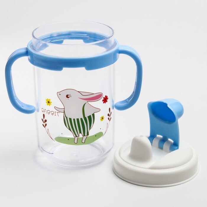Поильник детский с твёрдым носиком "Зайки. Мамы и малыши", с ручками, 150 мл, цвет голубой