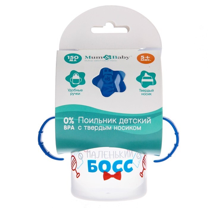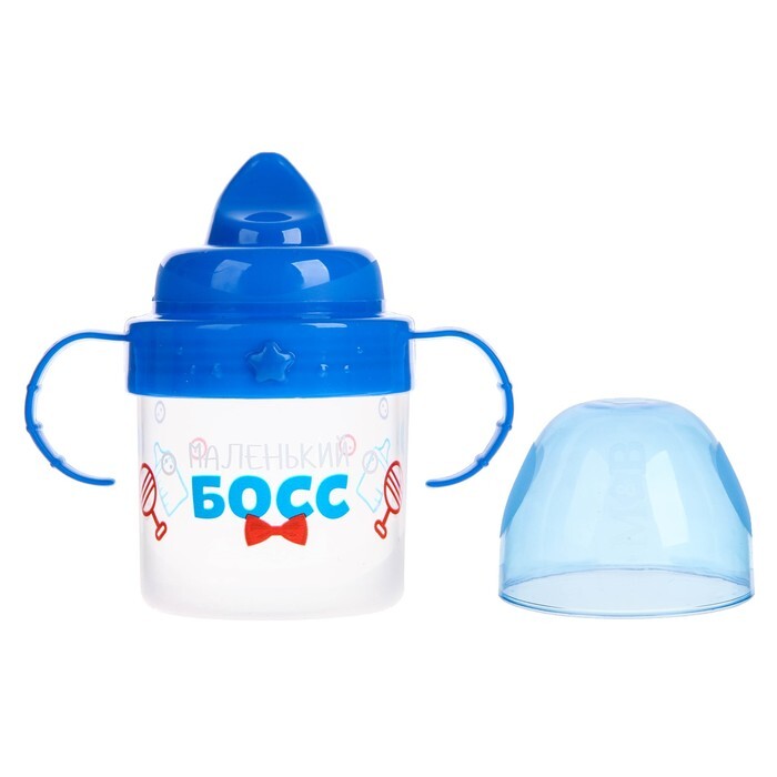 Поильник детский с твёрдым носиком "Маленький босс", с ручками, 150 мл, цвет синий