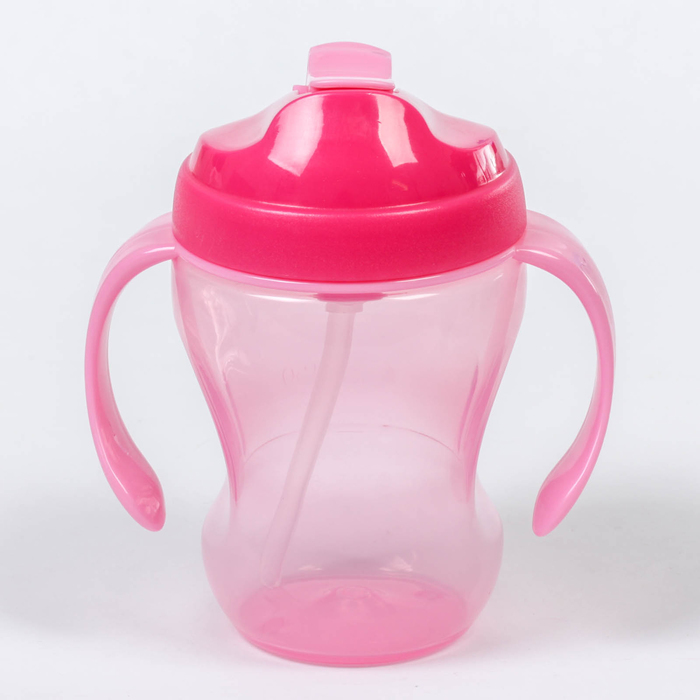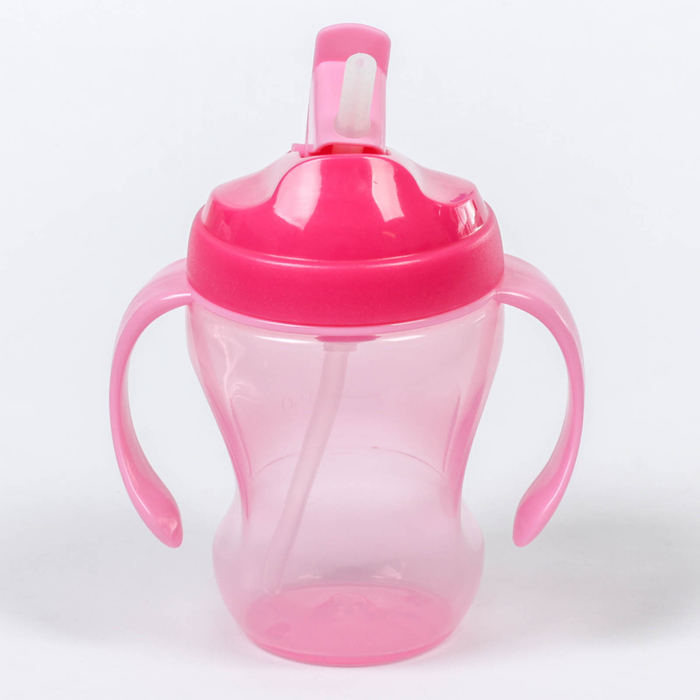 Поильник детский с трубочкой, с ручками, 260 мл, цвет розовый