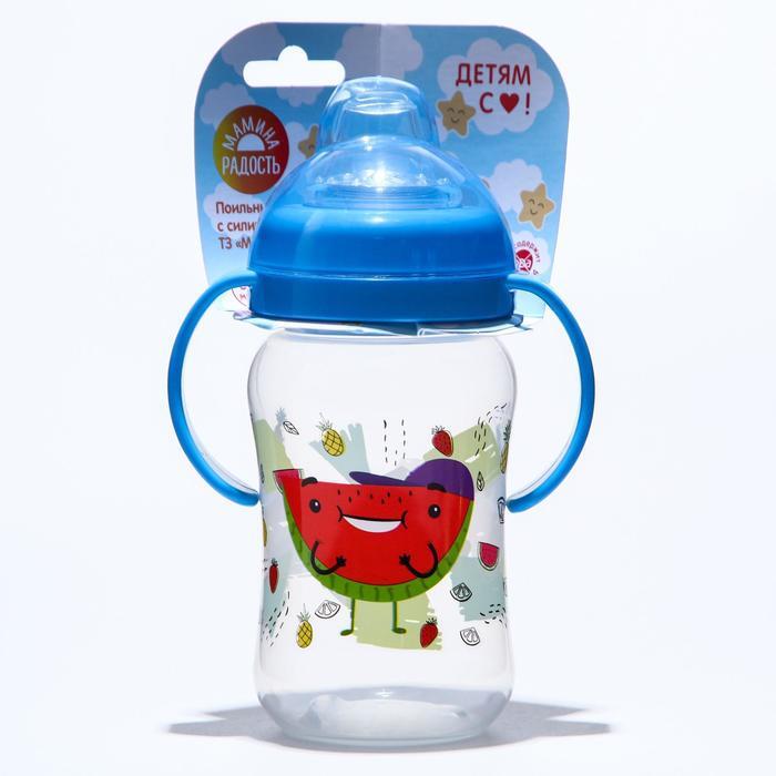 Поильник с ручками, мягкий носик, 270 мл, цвет светло-голубой