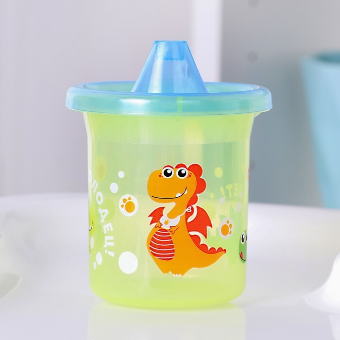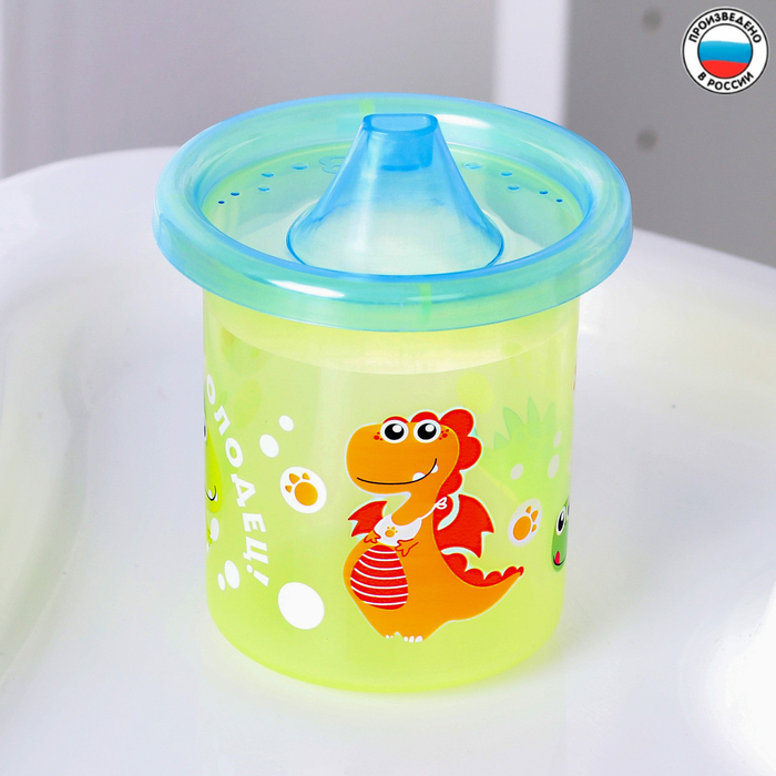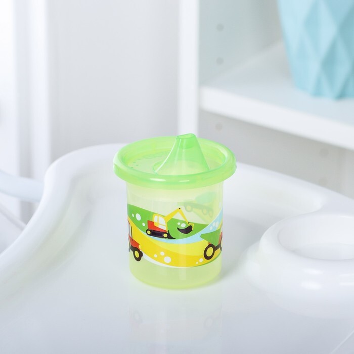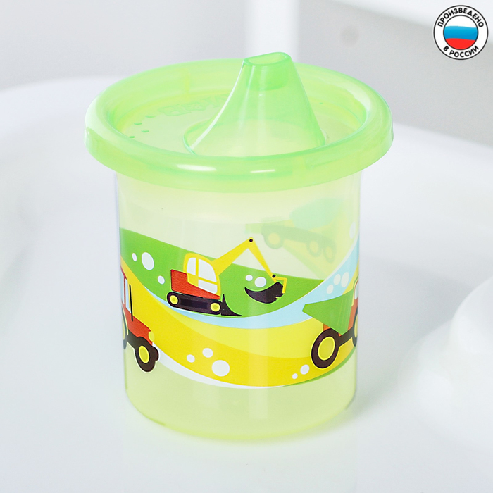 Поильник детский "Транспорт" с твёрдым носиком 200 мл, цвет желтый/зеленый