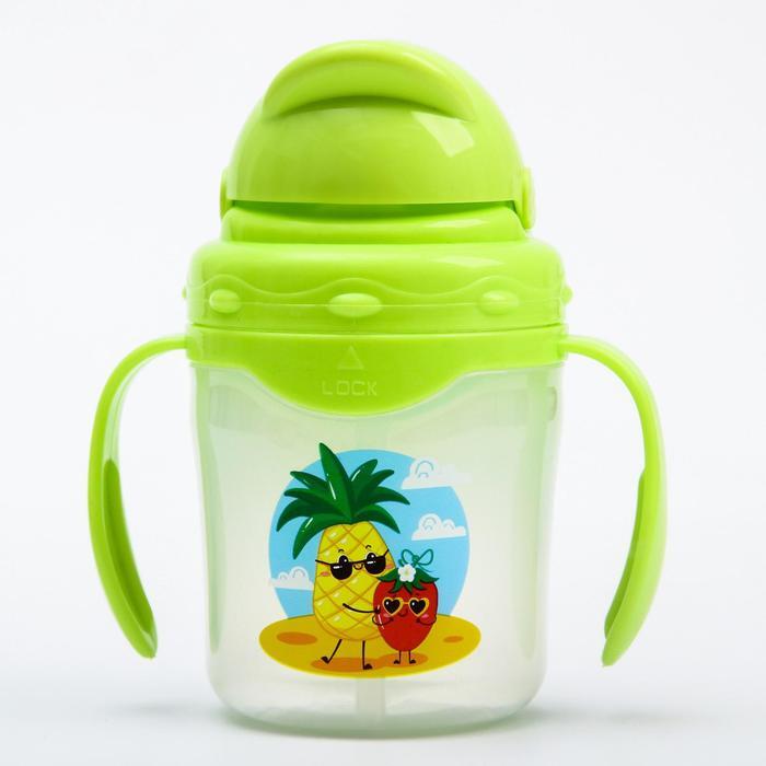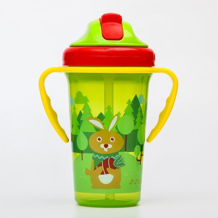 Поильник детский с силиконовой трубочкой, 300 мл., с ручками, цвет зеленый