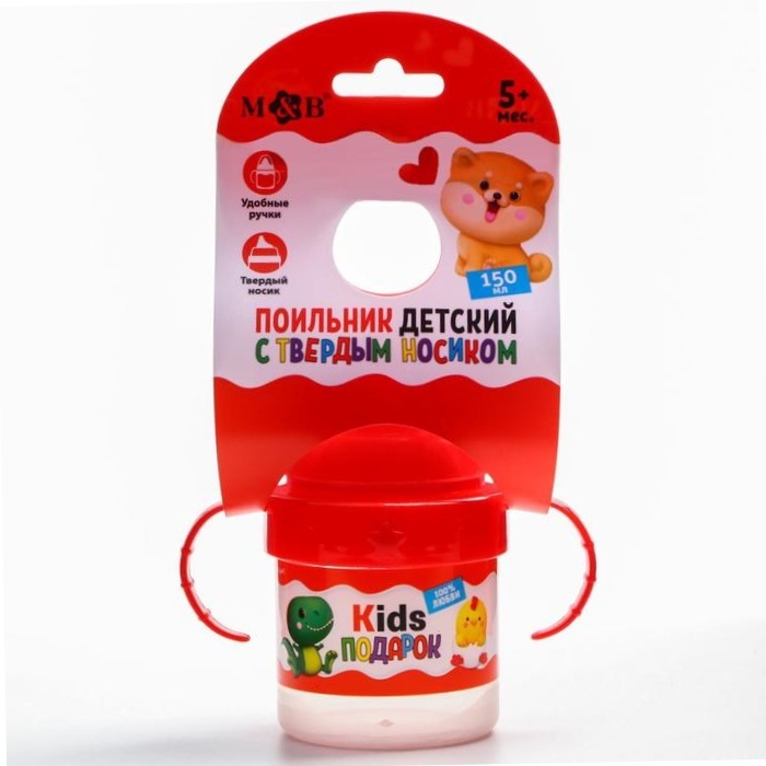 5 шт. Поильник детский с твёрдым носиком Люблю маму и папу , с ручками, 150 мл, цвет красный