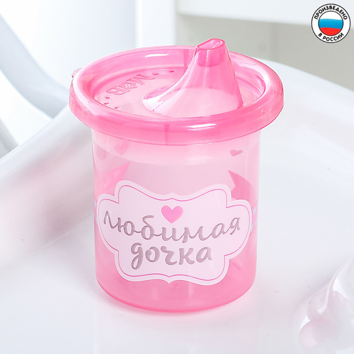 Поильник детский "Любимая доченька", с твёрдым носиком, 200 мл, цвет розовый
