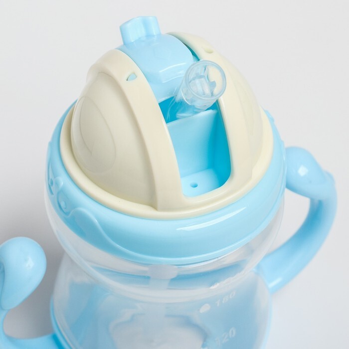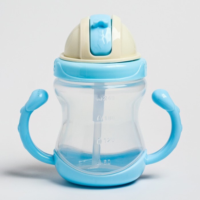 Поильник с трубочкой, 280 мл, с ручками, цвет голубой
