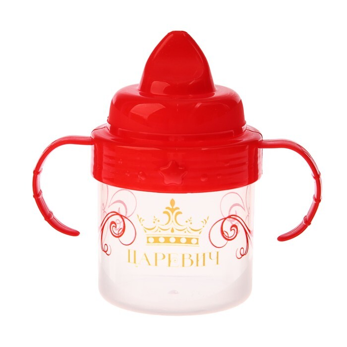 Поильник детский с твёрдым носиком "Царевич", с ручками, 150 мл, цвет красный