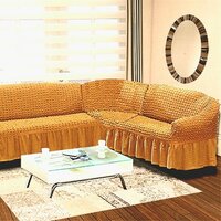 Чехол на угловой диван с выступом (оттоманкой) правый угол, медовый