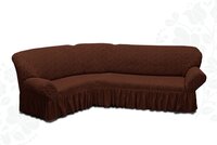Чехол на угловой диван с оборкой жаккардовый коричневый
