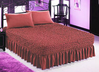 Чехол покрывало на кровать на резинке с 2 наволочками бордовый