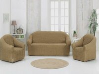 Карна Набор чехлов без юбки на трехместный диван и два кресла Bulsan бежевый