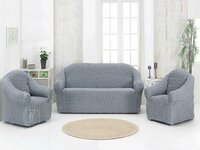 Карна Набор чехлов без юбки на трехместный диван и два кресла Bulsan серый