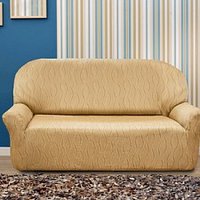 Комплект стрейч чехлов Вензель без оборки (диван+2 кресла), Кремовый