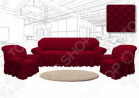Натяжной чехол на трехместный диван и чехлы на 2 кресла Karbeltex 1740648