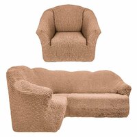 Чехол на угловой диван и кресло, песочный