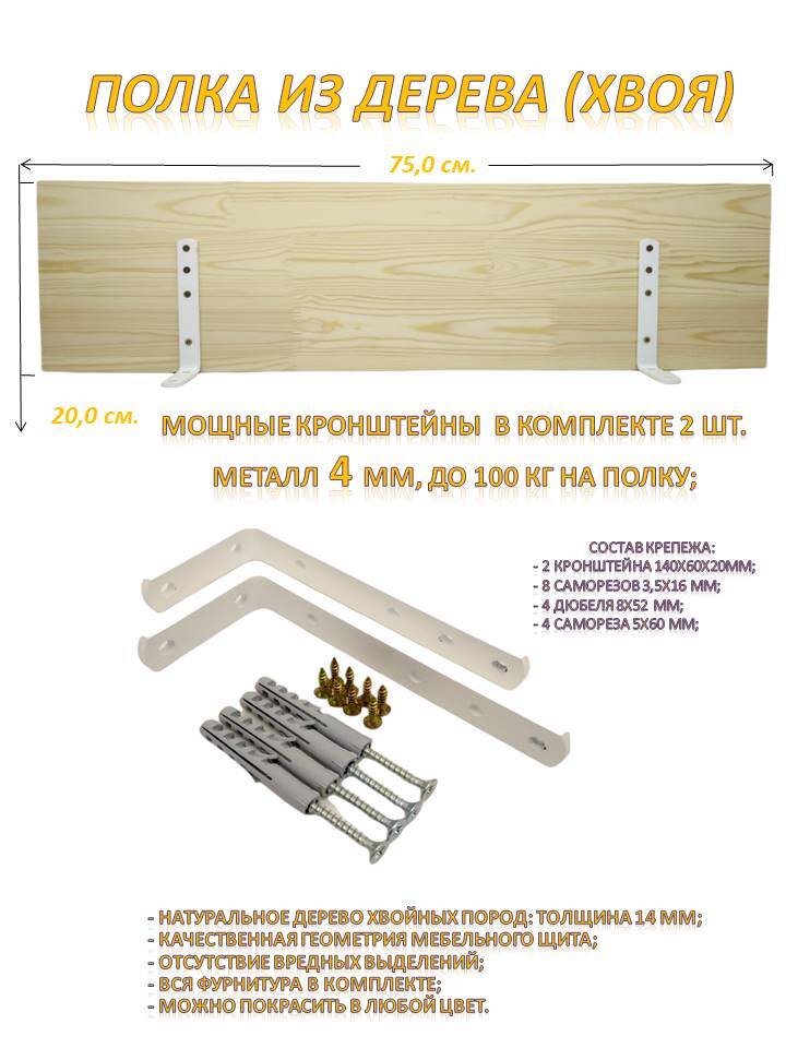 Полка Настенная Прямая вешалка «Уют-Амуры», 55х8х22 см, 1 шт.