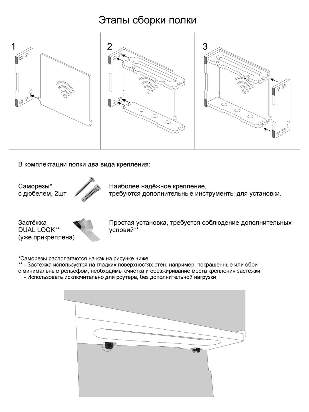 Полка Настенная Прямая под роутер большая, рисунок wi-fi, 37х9.5х20 см, 1 шт.