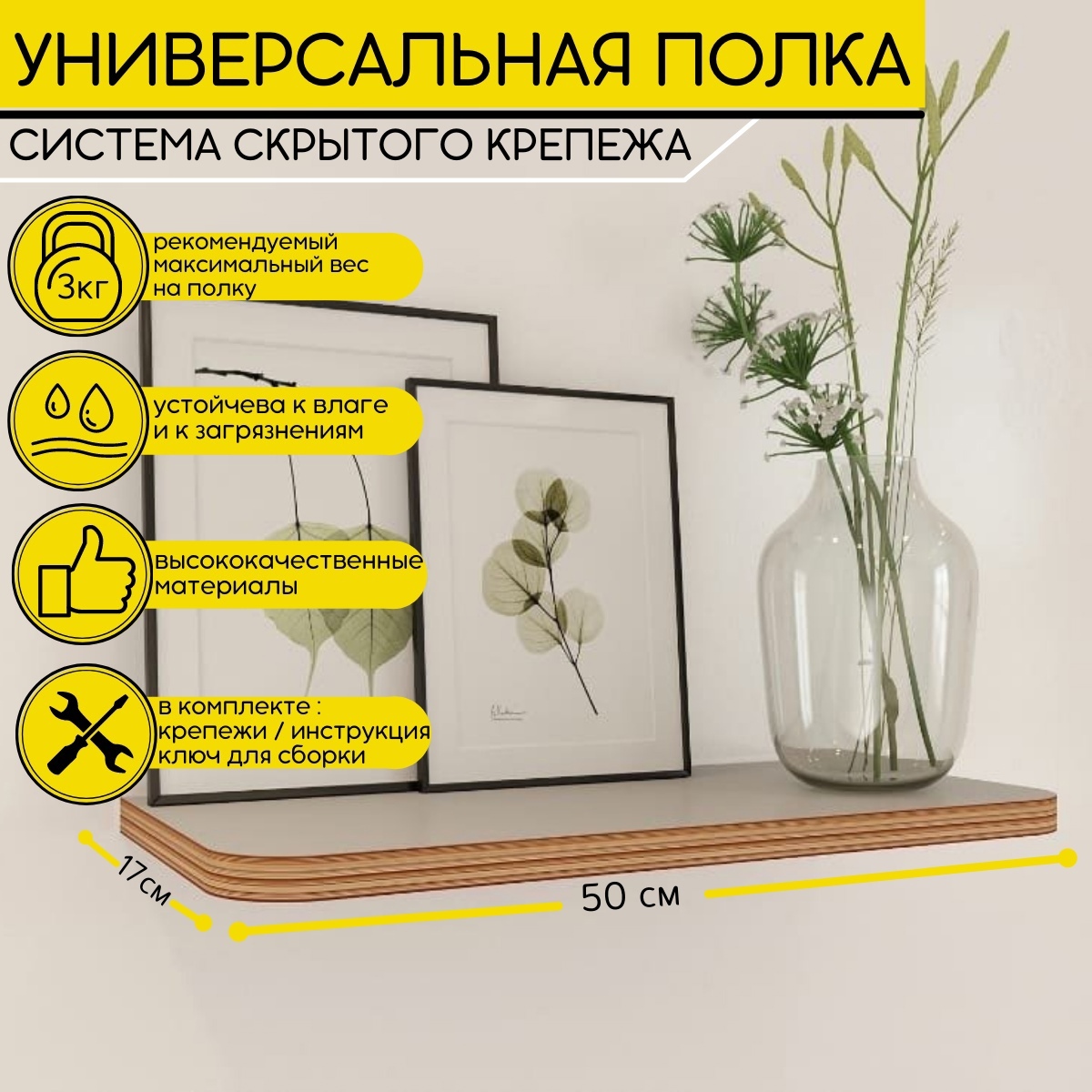 Полка Настенная Прямая Настенная WoodCountry, 50х17х1.2 см, 1 шт.
