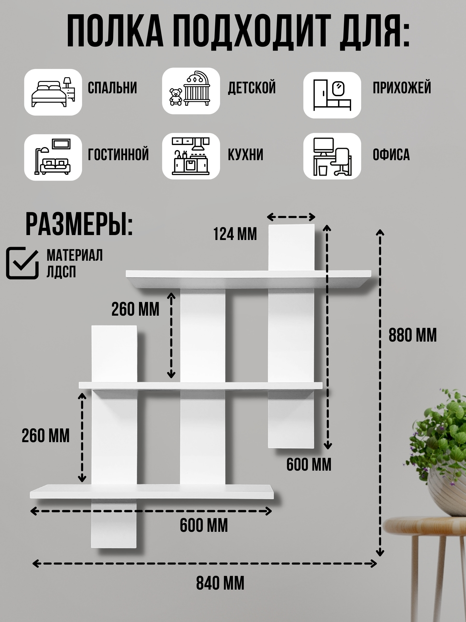 Полка Настенная Прямая нежность, 58х6х85 см, 1 шт.