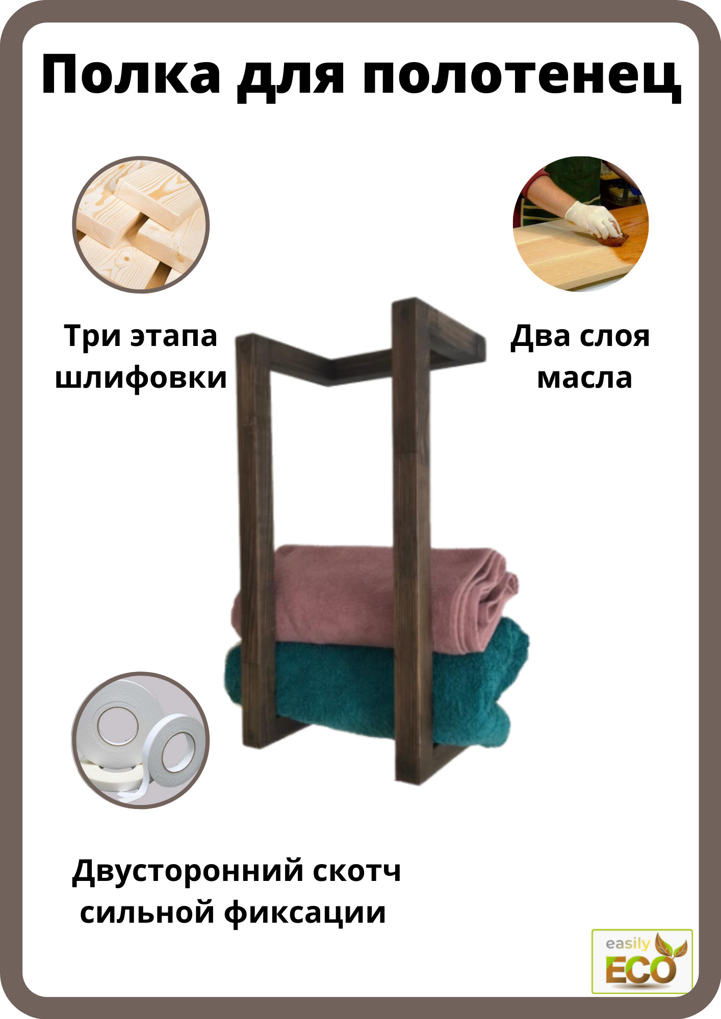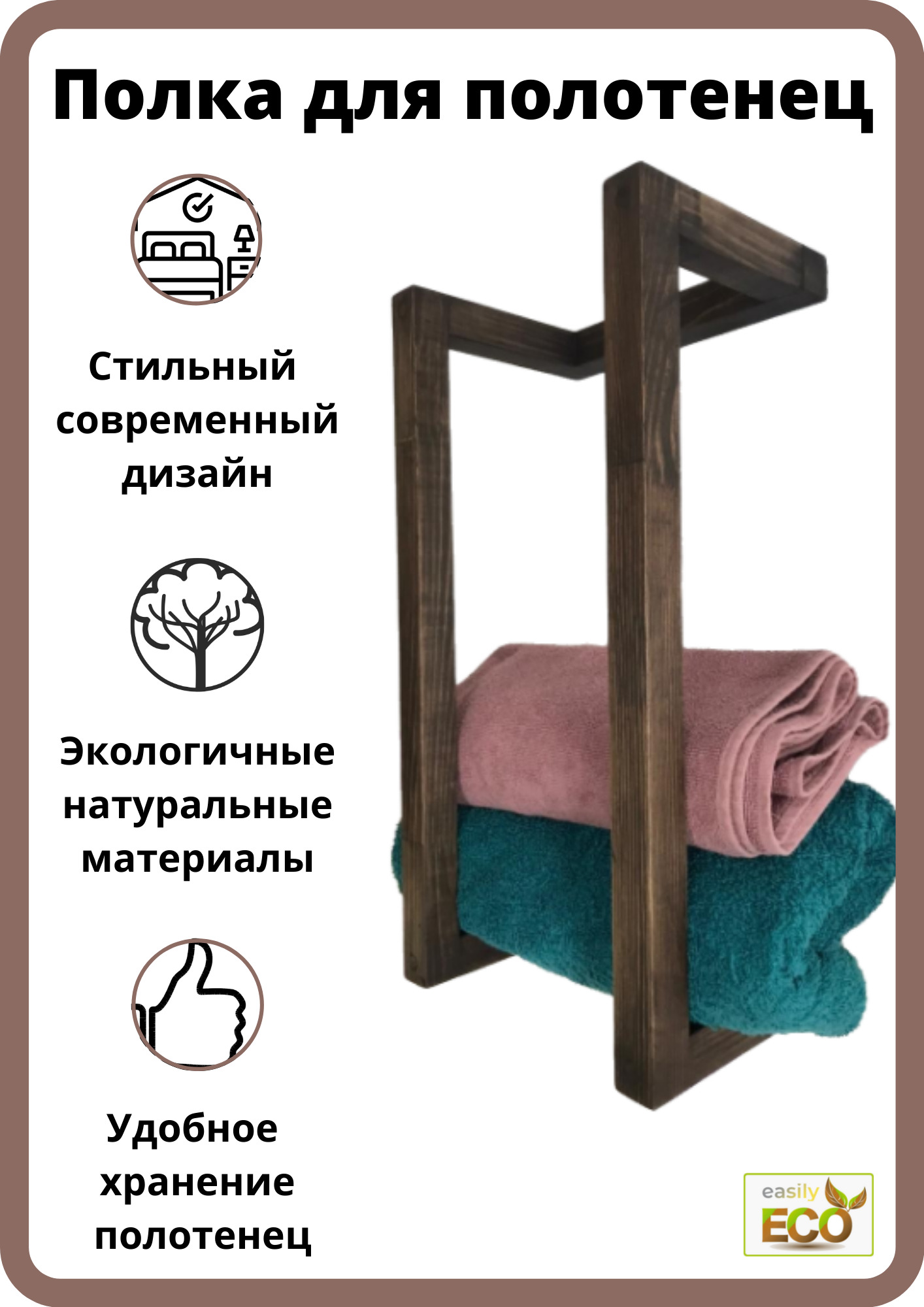 Полка Настенная из дерева, 25х15х50 см, 1 шт.