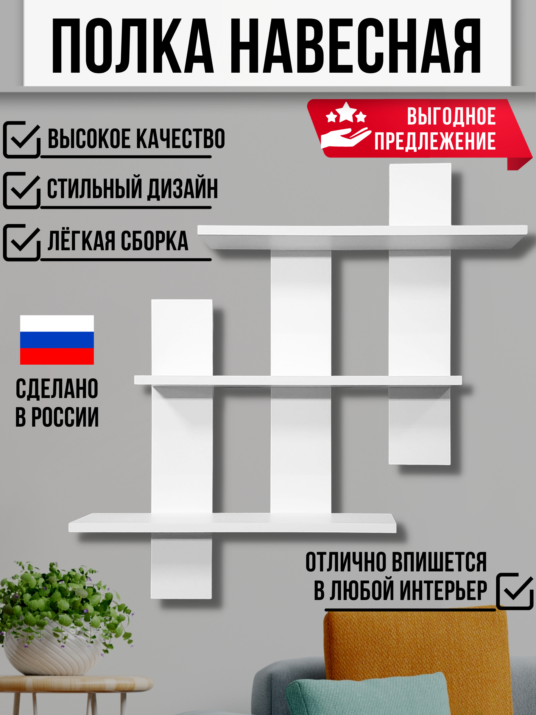 Полка Настенная 3242928, 43.5х15х25 см, 1 шт.