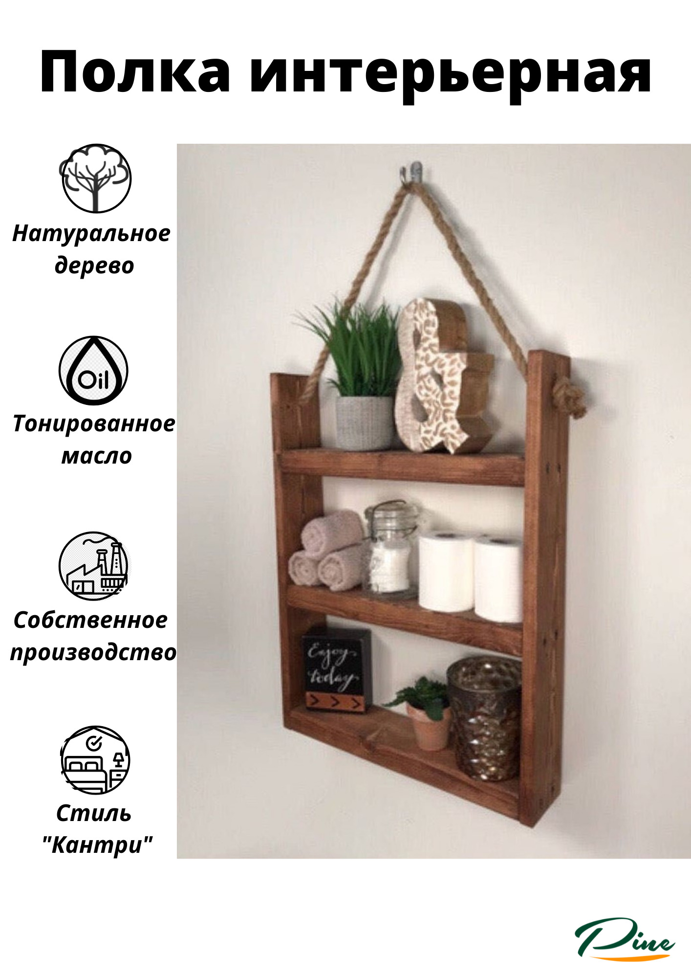 Полка, Полка для икон Настенная Прямая Винтажная одноярусная, 40х5х22 см, 1 шт.