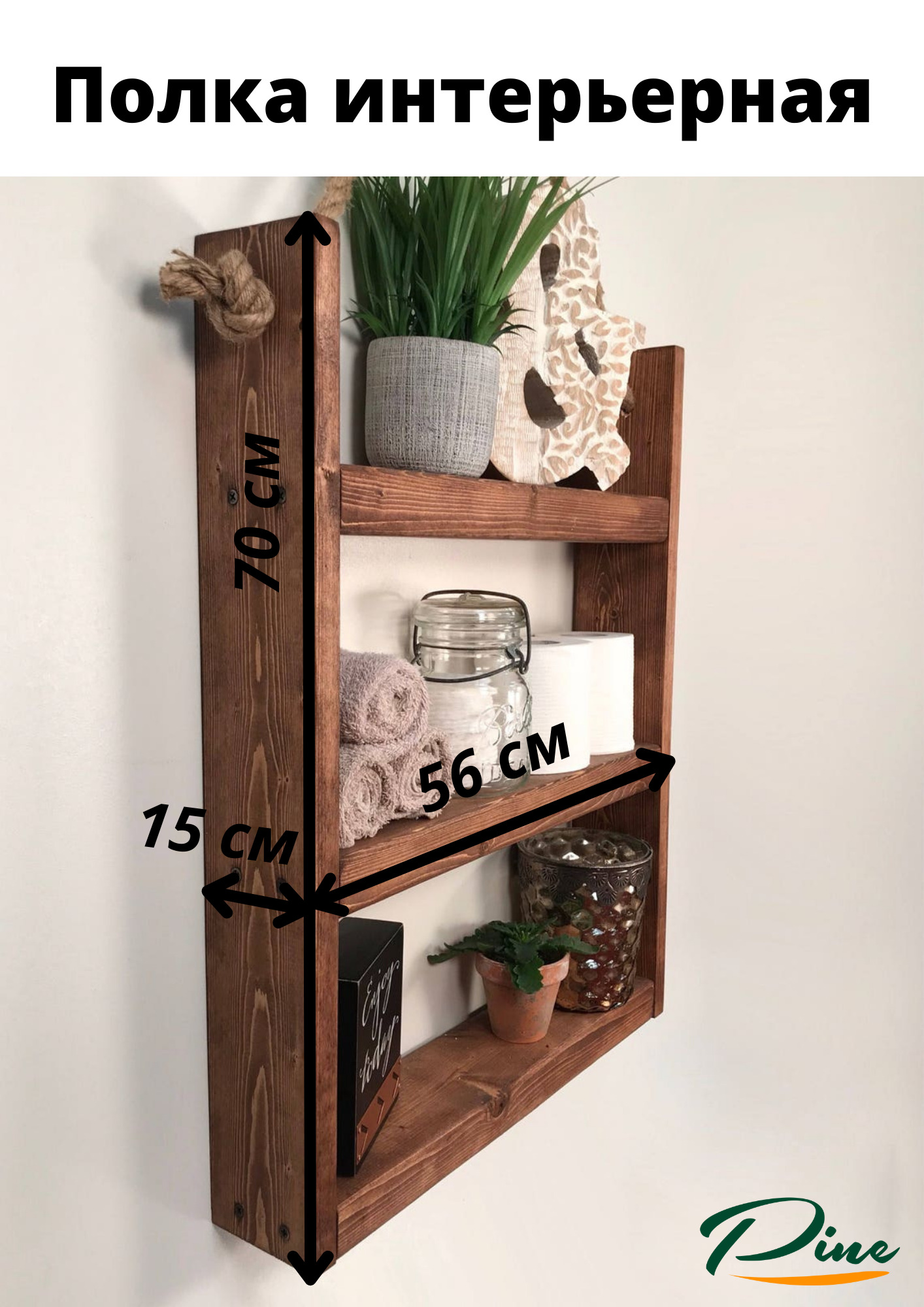 Полка Настенная Прямая Loft, 70х26х30 см, 1 шт.