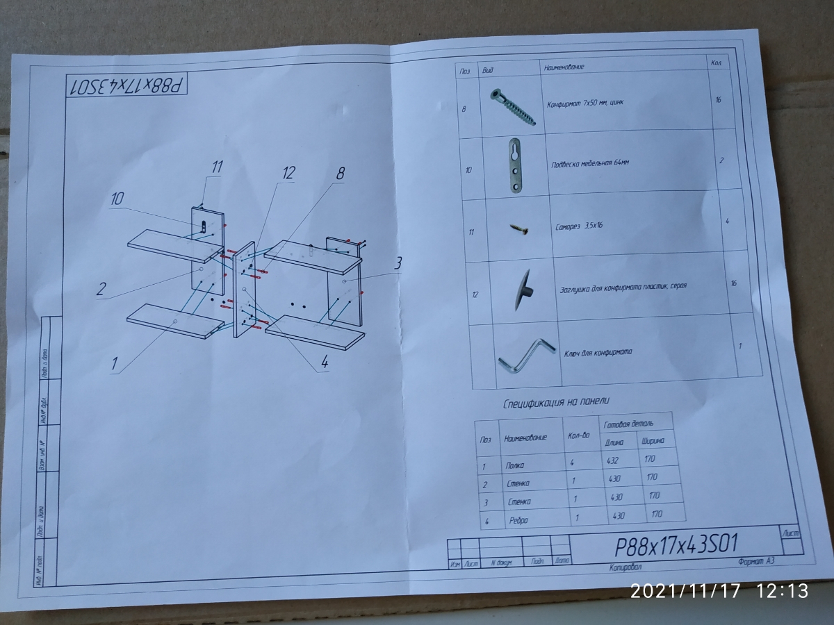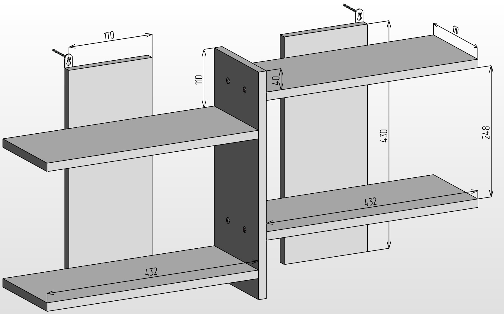Полка, Надстройка на стол Настенная Прямая Премиум, 88х17х43 см, 1 шт.