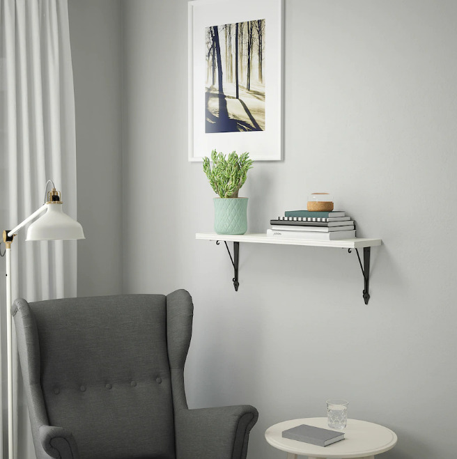 Полка Настенная Прямая навесная белая с кронштейнами, 80х20х2.5 см, 1 шт.