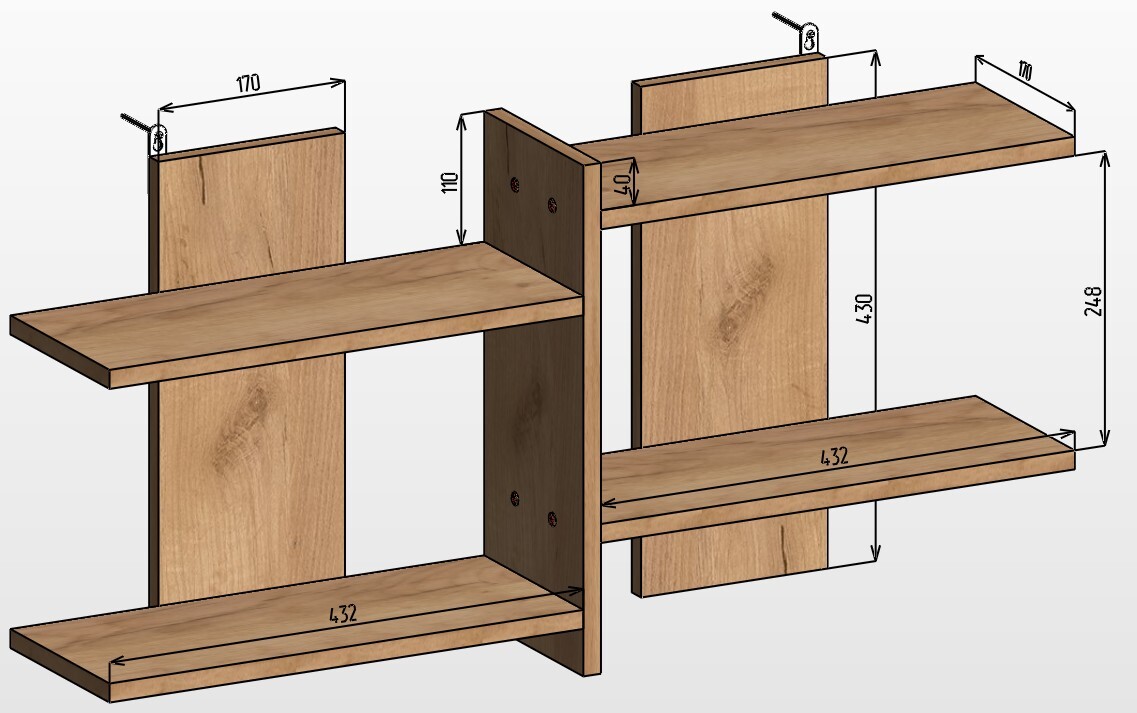 Комплект полок Настенная Видимые крепления, 40х15х4 см, 2 шт.