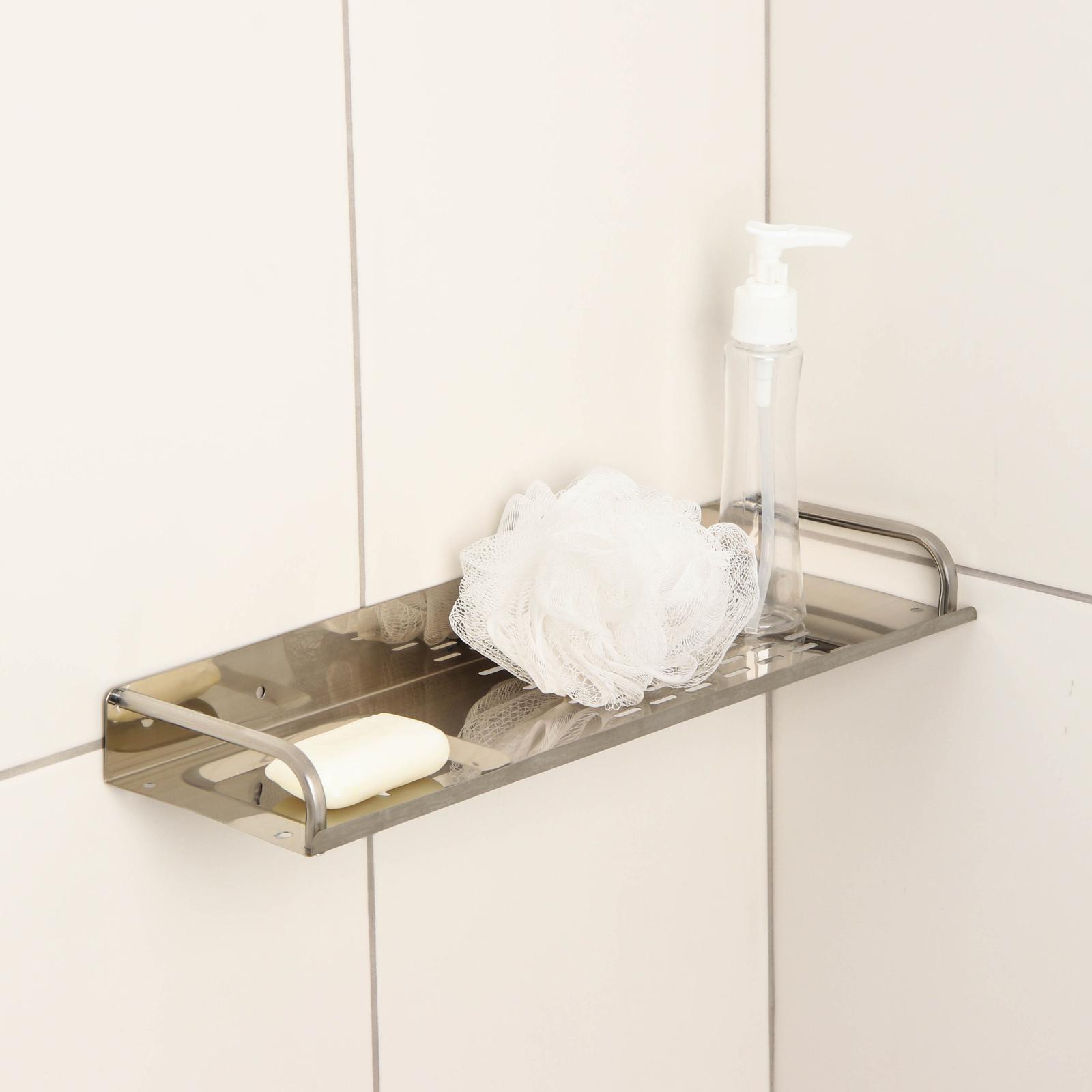 Полка настенная из нержавеющей стали, держатель для аксессуаров в ванную, размер 40х11х4 см