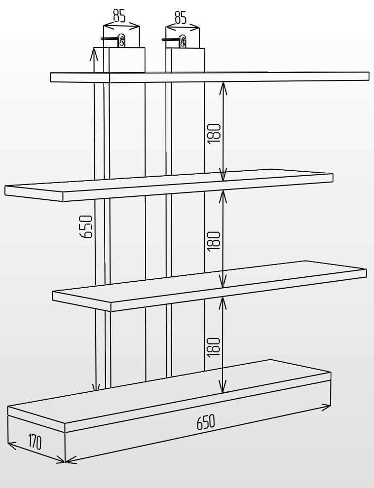 Полка, Надстройка на стол Настенная Прямая Тех, 75х18х65 см, 1 шт.