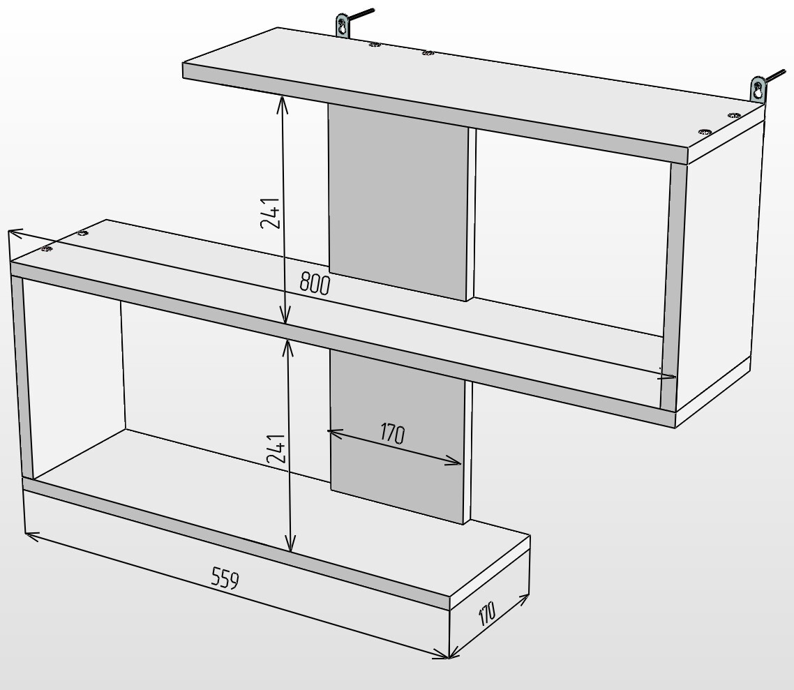 Полка Настенная Прямая Гость 2, 56,8х20х44,8 см, 1 шт.