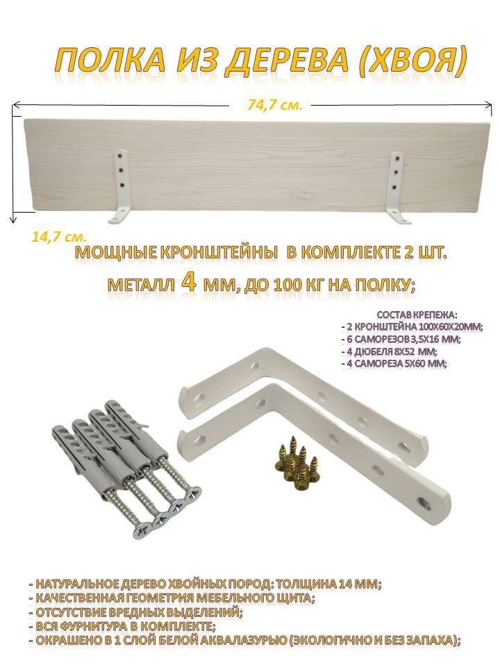 Полка Настенная Прямая Loft, 70х26х30 см, 1 шт.